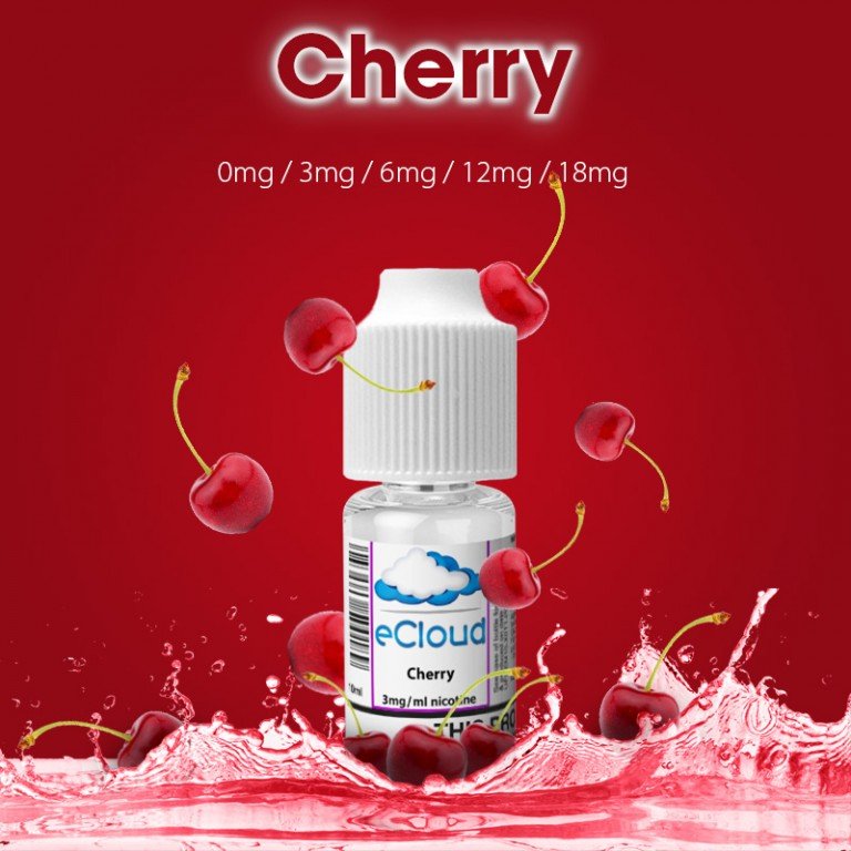 Bold and fruity Cherry E-Liquid by E-Cloud, available in 6mg, 12mg, and 18mg nicotine strengths for a smooth and satisfying vape.